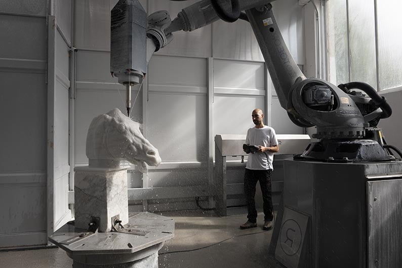 L’artista Barry X Ball installa nel suo studio a New York un robot di ROBOTOR L’artista, che non ha mai nascosto l’importanza della tecnologia nel